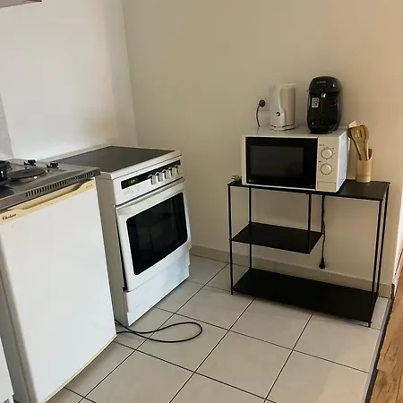Appartement Cosy 10Min Disneyland Parisの設備の整った台所の便利さを楽しみ、自家製の食事を用意できます。 最寄りのバス停Place de l'Europeは200メートルほどの距離にあります。